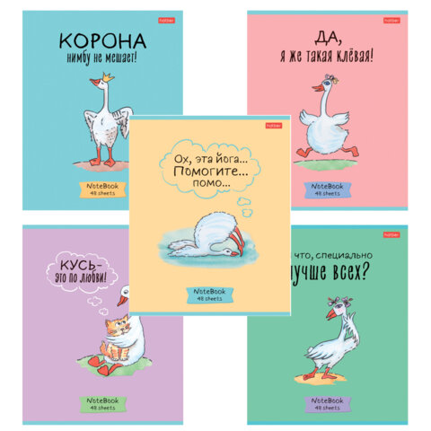 Тетрадь А5 48 л., HATBER скоба, клетка, обложка картон, "Гусь - веселюсь_Выпуск №1" (микс), 078589, 48Т5В1