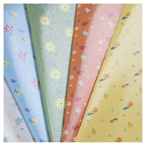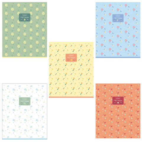 Тетрадь А5 48 л., HATBER, скоба, клетка, обложка картон, тиснение, Цветочный орнамент (микс), 092867, 48Т5тВ1