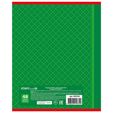 Тетрадь А5, 48 л., STAFF, скоба, клетка, офсет №2 ЭКОНОМ, обложка картон, "АБСОЛЮТ", 402784