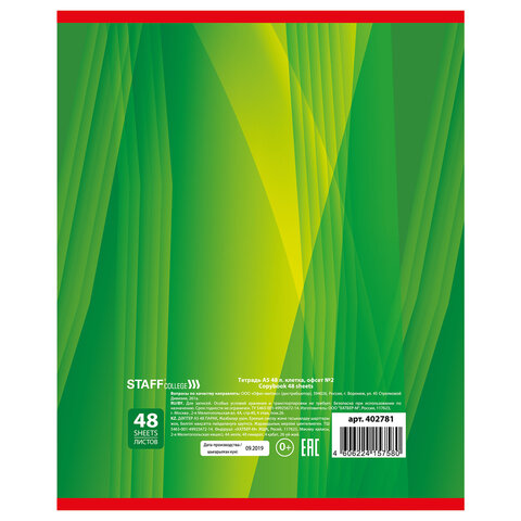 Тетрадь А5, 48 л., STAFF, скоба, клетка, офсет №2 ЭКОНОМ, обложка картон, "ОДИН ЦВЕТ" (линии), 402781