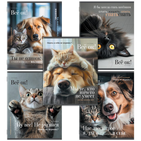 Тетрадь А5 48 л. STAFF "College", скоба, клетка, офсет №2 ЭКОНОМ, обложка картон, "ПУШИСТЫЕ ДРУЗЬЯ", 405627