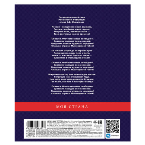 Тетрадь А5 48л. HATBER скоба, клетка, обложка картон, Я люблю Россию (микс в спайке), 088671, 48Т5В1