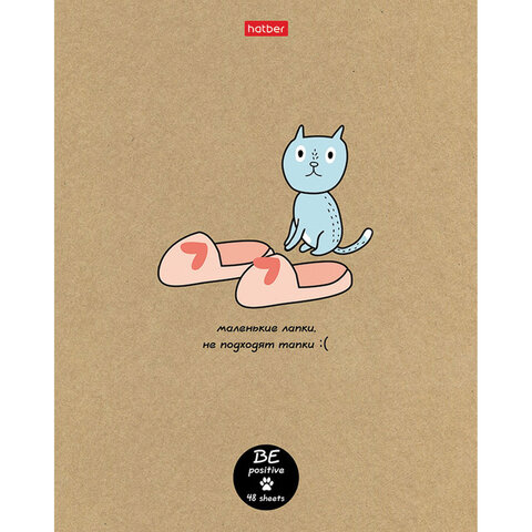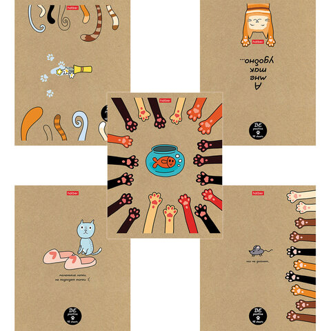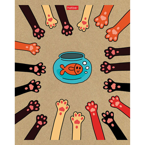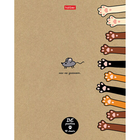 Тетрадь А5 48л. HATBER скоба, клетка, обложка крафт, "На мягких лапках" (микс в спайке), 066340, 48Т5В1