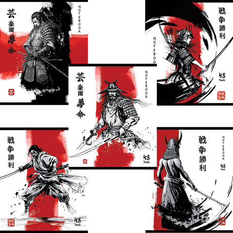 Тетрадь А5 48 л., ПЗБМ, скоба, клетка, TWIN-лак, "Самурай", (5 видов), 24109