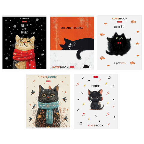 Тетрадь обложка пластик, А5, 48 л., скоба, линия, HATBER, "Котэ" (микс в спайке), 091627, 48Т5В2пл
