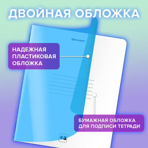 Тетрадь пластиковая обложка (НЕОН) А5, 48 листов, скоба, клетка, BRAUBERG "Smart Cover", СИНЯЯ, 405039