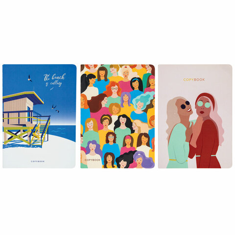 Тетради 40 л. в клетку обложка SoftTouch, НАБОР 3 шт., бежевая бумага 70 г/м2, сшивка, А5 (147х210 мм), JOY, BRAUBERG, 403791