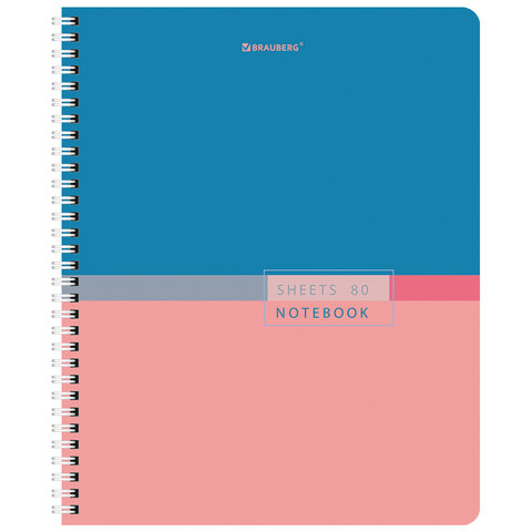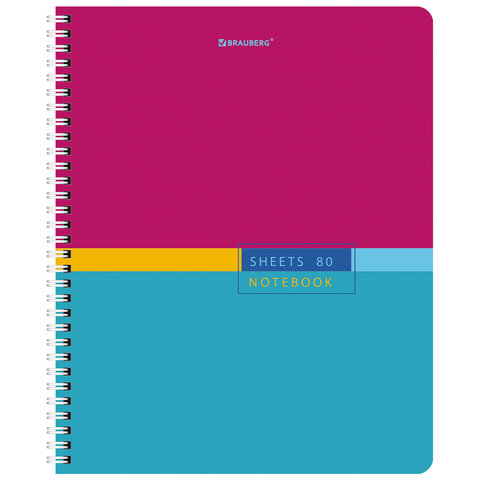 Тетрадь А5 80 л. BRAUBERG, гребень, клетка, обложка картон, "Color" (микс в спайке), 404413
