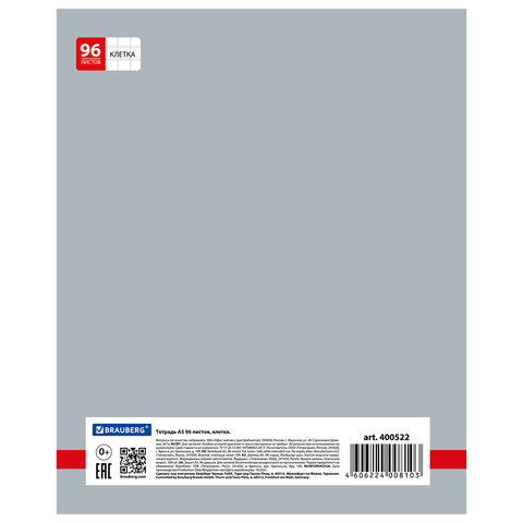 Тетрадь А5, 96 л., BRAUBERG, скоба, клетка, обложка картон, "INDAY", 400522