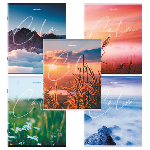 Тетрадь А5 96 л. BRAUBERG скоба, клетка, обложка картон, "Calm" (микс в спайке), 404435