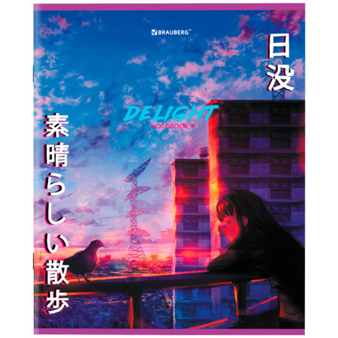Тетрадь А5, 96 л., BRAUBERG, скоба, клетка, TWIN-лак, "Аниме", 404434