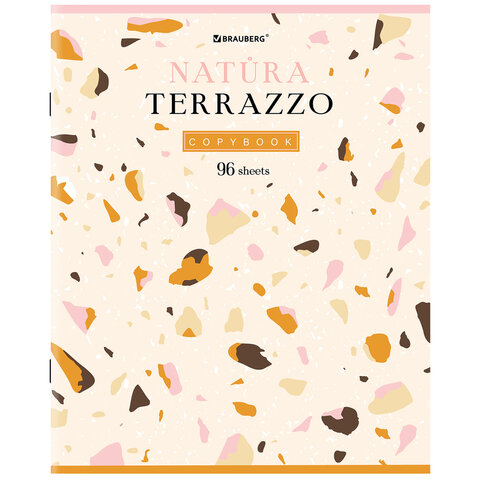 Тетрадь А5, 96 л., BRAUBERG, скоба, клетка, TWIN-лак, "Natura Terrazzo", 404431