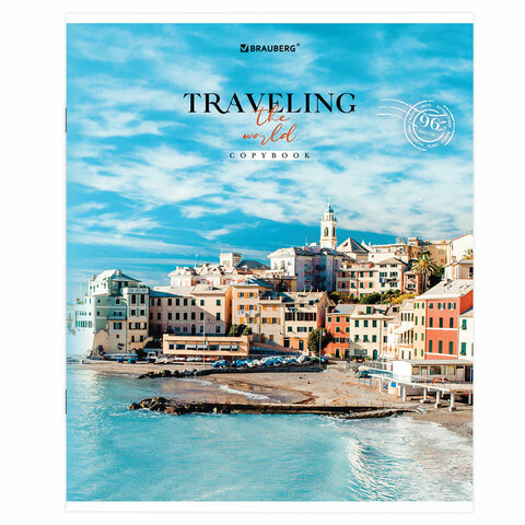 Тетрадь А5, 96 л. BRAUBERG, скоба, линия, обложка картон, "Traveling" (микс в спайке), 404439