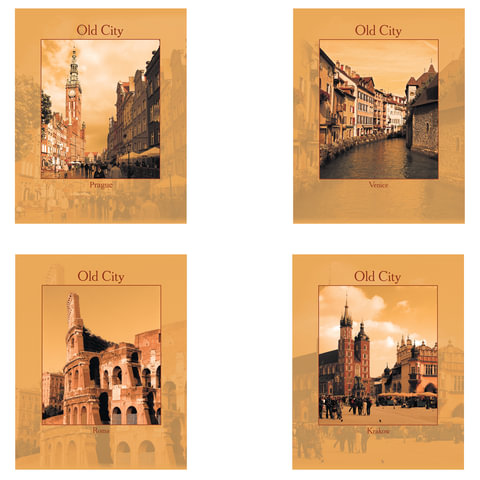 Тетрадь А5, 96 л., STAFF, скоба, клетка, офсет №2 ЭКОНОМ, обложка картон, "ГОРОДА", 402467