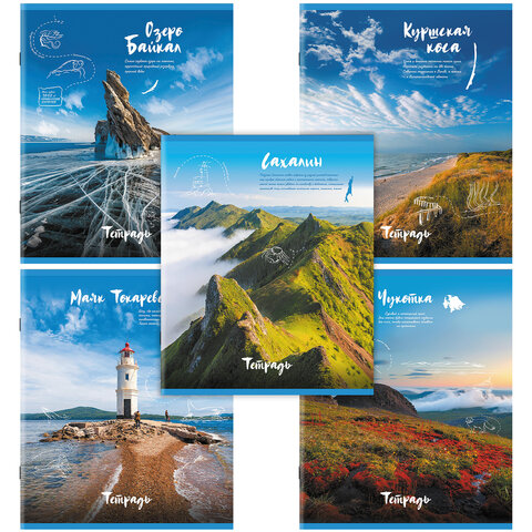 Тетрадь А5, 96 л., STAFF, скоба, клетка, офсет №2 ЭКОНОМ, обложка картон, "Природа" (микс в спайке), 404441