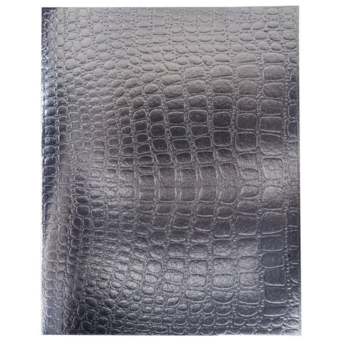 Тетрадь бумвинил А5 96 л., скоба, офсет №1, клетка, с полями, HATBER, СЕРЕБРО, "Metallic", тиснение CROCO, 072799, 96Т5бвВ1