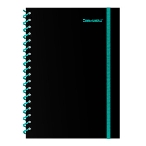 Тетрадь обложка пластик, А5 80 л., спираль пластик, резинка, клетка, BRAUBERG, черный/синий, 405385