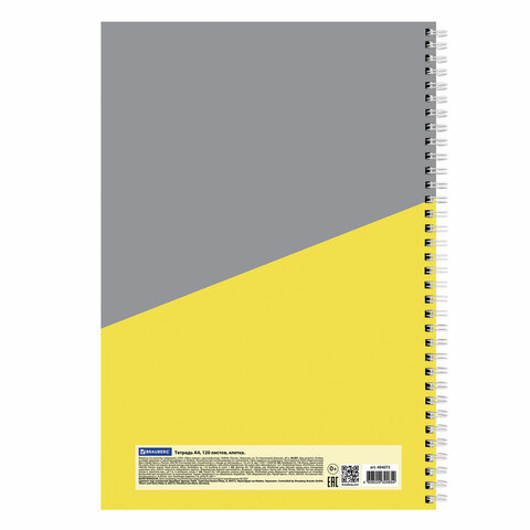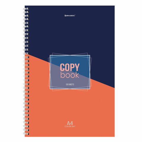 Тетрадь А4, 120 л., BRAUBERG, гребень, клетка, обложка твердая, "Office", 404073