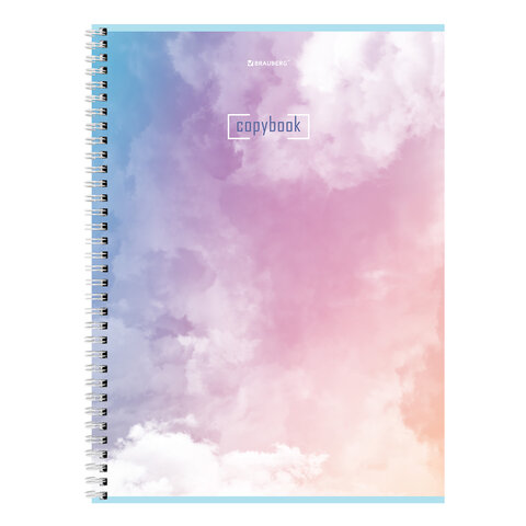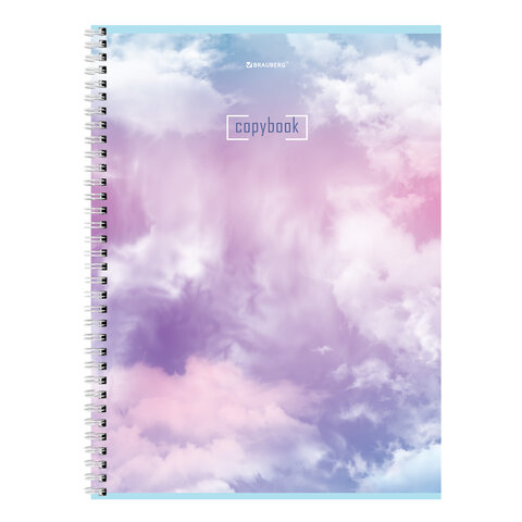 Тетрадь А4, 80 л., BRAUBERG, гребень, клетка, глянцевый лак, "CLOUD", 404053