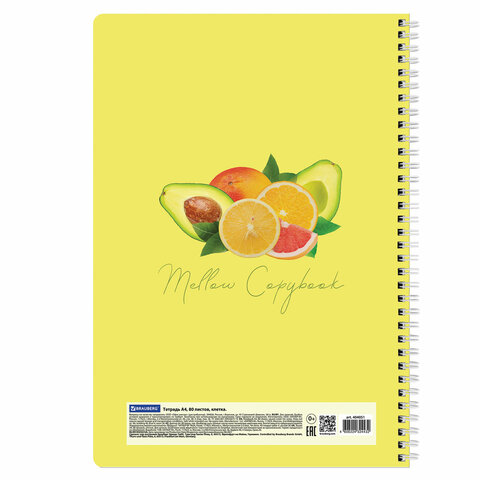 Тетрадь А4, 80 л., BRAUBERG, гребень, клетка, обложка картон, "Фрукты", 404051