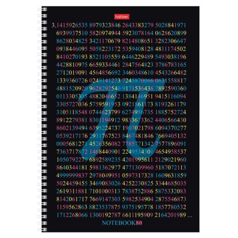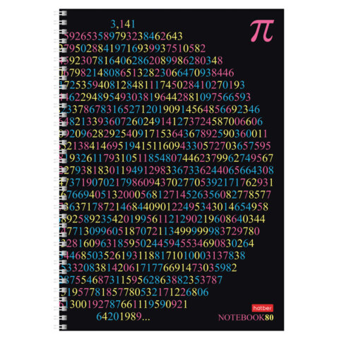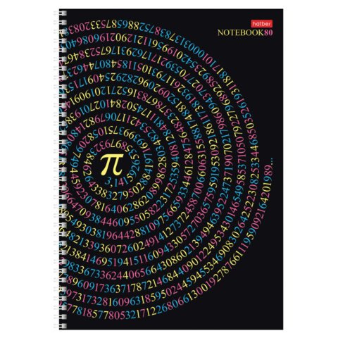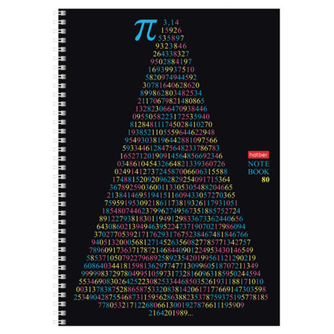 Тетрадь А4 80 л., HATBER, гребень, клетка, обложка картон, "Число Пи" (микс в спайке), 077327, 80Т4В1гр