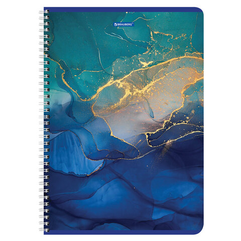 Тетрадь А4, 96 л., BRAUBERG, гребень, клетка, матовая ламинация, "Marble", 404063