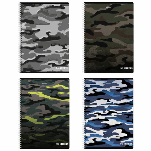 Тетрадь А4, 96 л., BRAUBERG, гребень, клетка, обложка картон, "Military", 404057