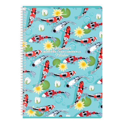 Тетрадь А4, 96 л., BRAUBERG, гребень, клетка, TWIN-лак, "Карпы Кои" (микс в спайке), 405313