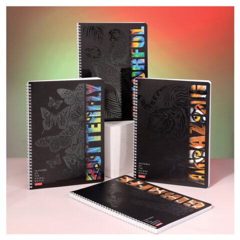 Тетрадь А4 96 л., HATBER, гребень, клетка, матовая ламинация, 3D-лак, "Animals print" (микс), 085842, 96Т4лолВ1гр