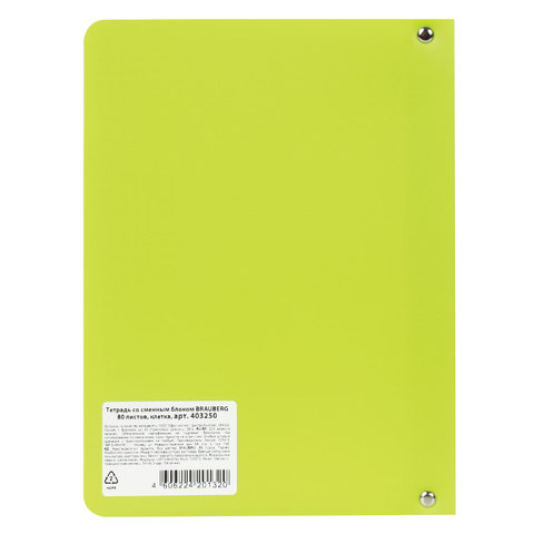 Тетрадь на кольцах BRAUBERG с пластиковой обложкой яркого и насыщенного салатового цвета станет незаменимым помощником для учебы и работы.