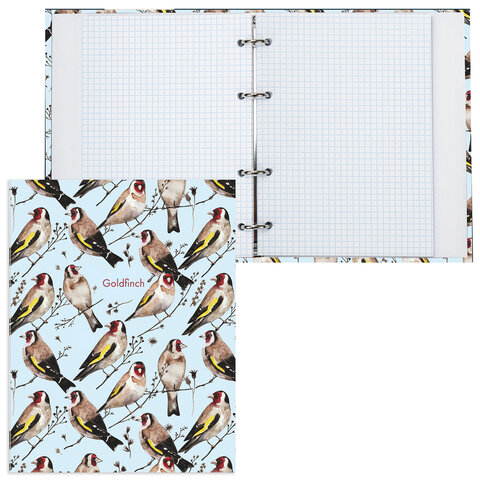 Тетрадь на кольцах А5 (175х215 мм), 120 листов, твердый картон, клетка, BRAUBERG, Щеглы, 404079