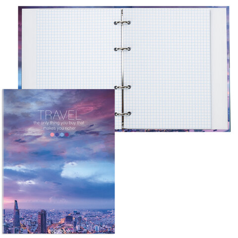 Тетрадь на кольцах А5 (175х215 мм), 120 листов, твердый картон, клетка, BRAUBERG, Travel, 404080