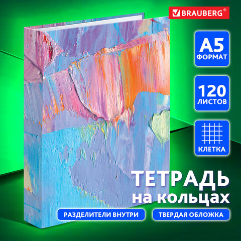 Тетрадь на кольцах А5 (175х215 мм), 120 листов, твердый картон, клетка, с разделителями, BRAUBERG, Blur, 404087