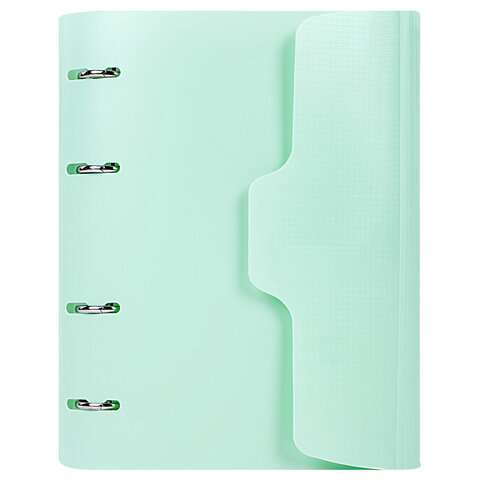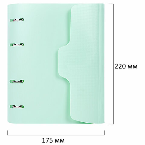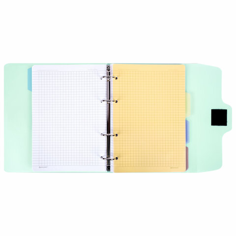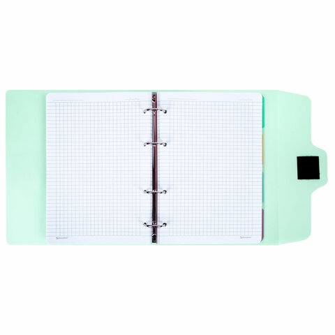 Тетрадь на кольцах А5 175х220 мм, 120 л., пластик, на липучке, с разделителями, BRAUBERG, Мятный, 404638