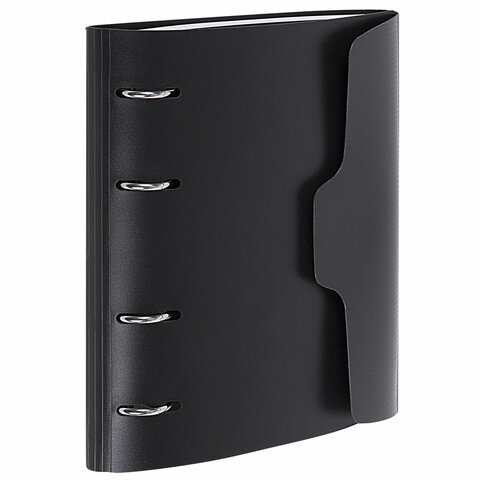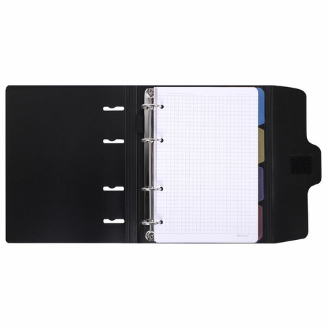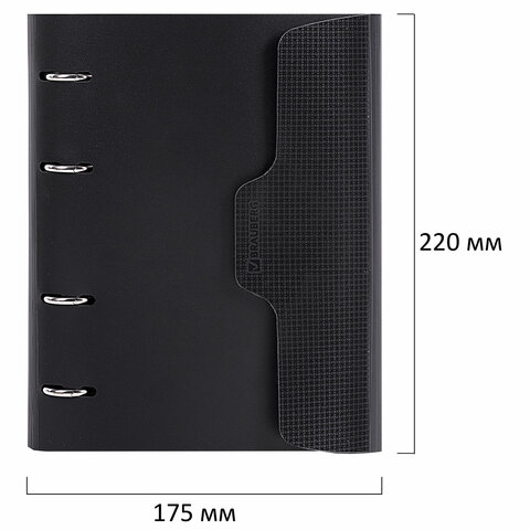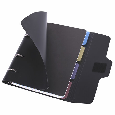 Тетрадь на кольцах А5 175х220 мм, 120 л., пластик, на липучке, с разделителями, BRAUBERG, Черный, 404637