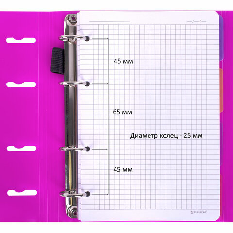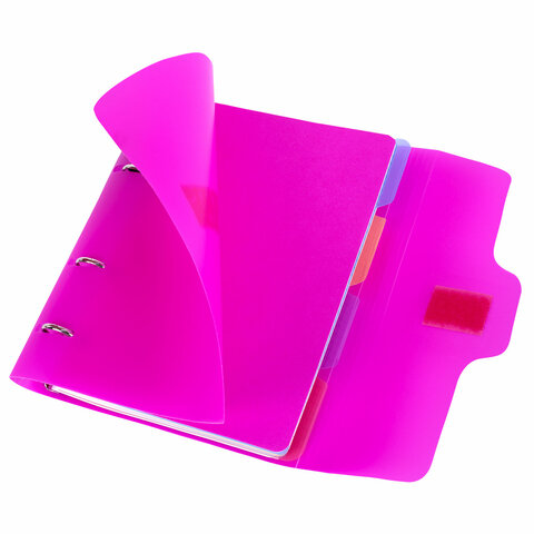 Тетрадь на кольцах А5 175х220 мм, 120 л., пластик, на липучке, с разделителями, BRAUBERG, Розовый, 404635