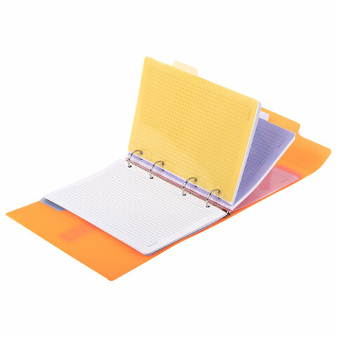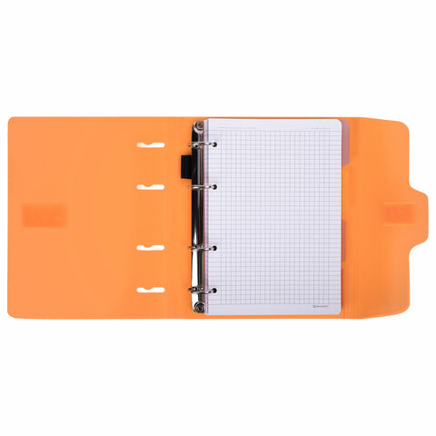 Тетрадь на кольцах А5 175х220 мм, 120 л., пластик, на липучке, с разделителями, BRAUBERG, Оранжевый, 404636