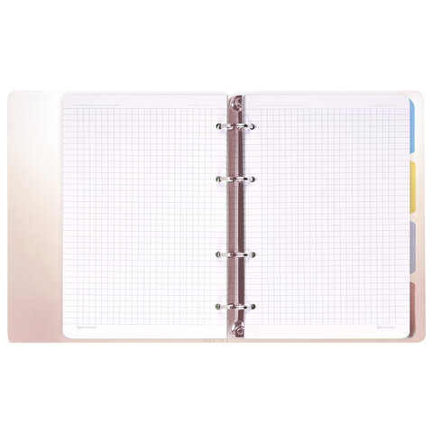Тетрадь на кольцах с пластиковой градиентной обложкой станет незаменимым помощником в учебе и работе. Импортный кольцевой механизм позволяет легко сменить внутренний блок.
