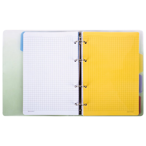 Тетрадь на кольцах А5 175х220 мм, 120 л., пластик, с разделителями, BRAUBERG, Зеленый, 404629
