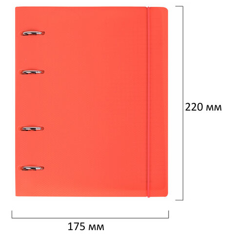 Тетрадь на кольцах А5 175х220 мм, 120 л., пластик, с резинкой, BRAUBERG, Коралловый, 404621