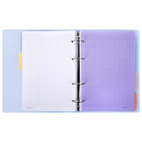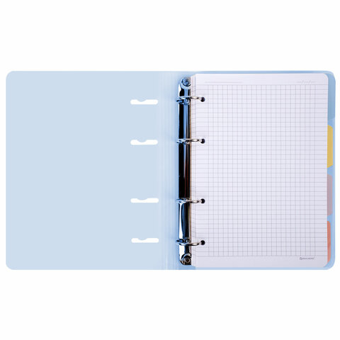 Тетрадь на кольцах А5 175х220 мм, 120 л., пластик с блестками, с резинкой и разделителями, BRAUBERG, Голубой, 404633