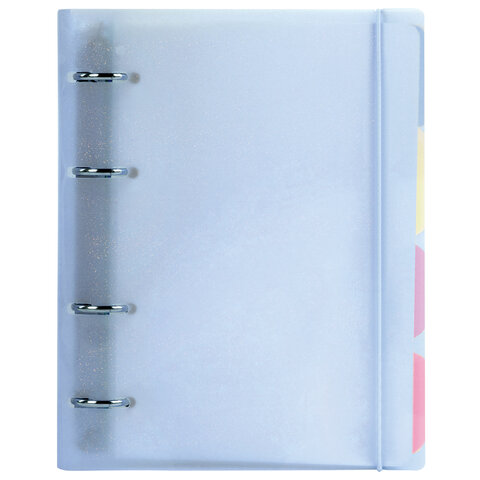 Тетрадь на кольцах с пластиковой обложкой с блестками станет незаменимым помощником в учебе и работе. Импортный кольцевой механизм позволяет легко сменить внутренний блок.