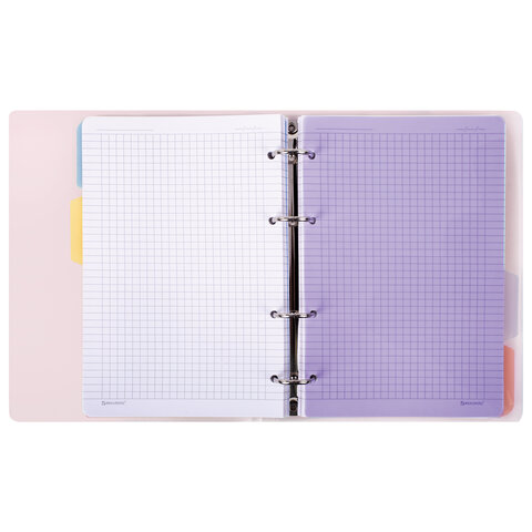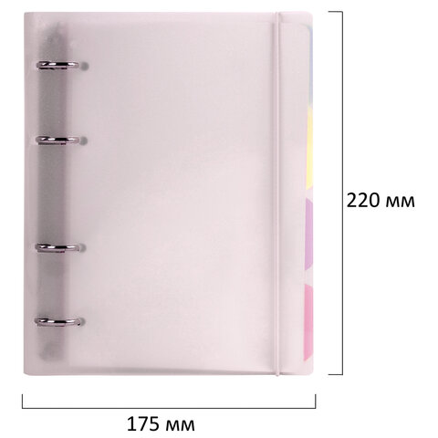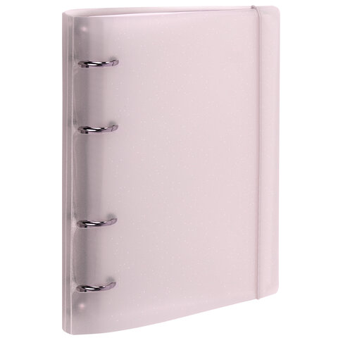 Тетрадь на кольцах А5 175х220 мм, 120 л., пластик с блестками, с резинкой и разделителями, BRAUBERG, Розовый, 404634