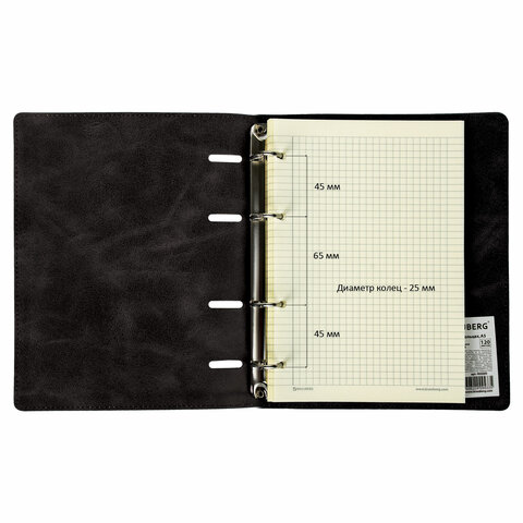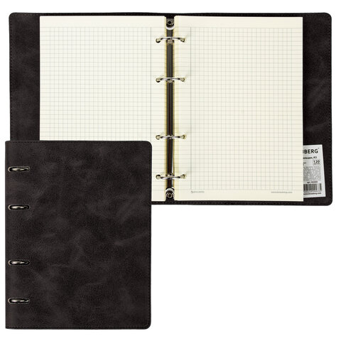 Тетрадь на кольцах А5 (180х220 мм), 120 листов, под кожу, клетка, BRAUBERG "Main", черный, 402004