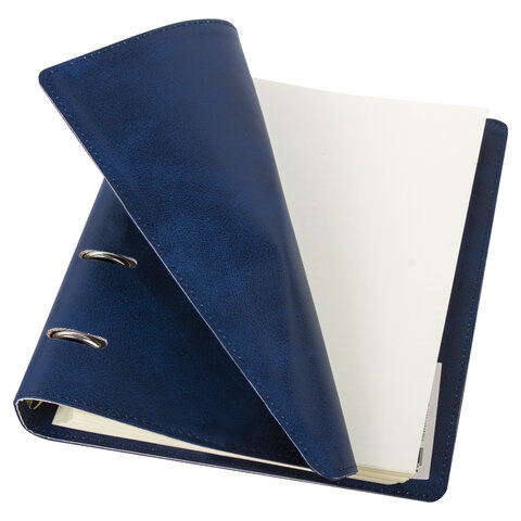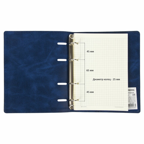 Тетрадь на кольцах А5 (180х220 мм), 120 листов, под кожу, клетка, BRAUBERG "Main", синий, 402005