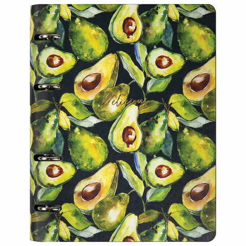 Тетрадь на кольцах А5 (180х220 мм), 80 листов, под кожу, клетка, тиснение фольгой, BRAUBERG VISTA, Avocado, 112130