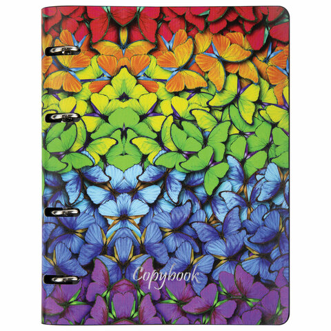 Тетрадь на кольцах А5 (180х220 мм), 80 листов, под кожу, клетка, тиснение фольгой, BRAUBERG VISTA, Butterflies,112128
