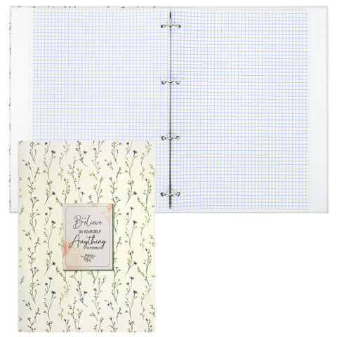 Удобная практичная тетрадь BRAUBERG "Цветы" для учебы и работы со сменным блоком и твердой ламинированной обложкой.
