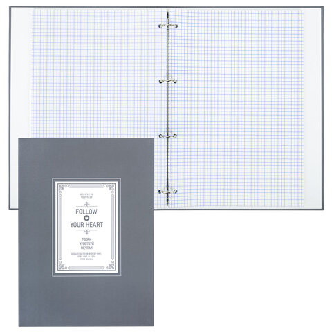 Тетрадь на кольцах БОЛЬШАЯ А4, 220х305 мм, 100 л., твердый картон, клетка, BRAUBERG, "Винтаж", 405410