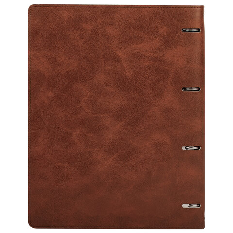 Тетрадь на кольцах БОЛЬШАЯ А4 (240х310 мм), 120 листов, под кожу, клетка, BRAUBERG "Main", коричневый, 404511